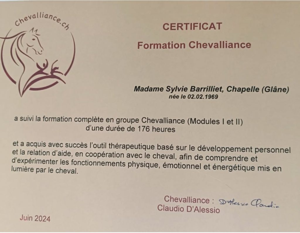 Il convient de noter que la thérapie-soin par travail au sol avec le cheval ne remplace aucunement les traitements médicaux traditionnels.